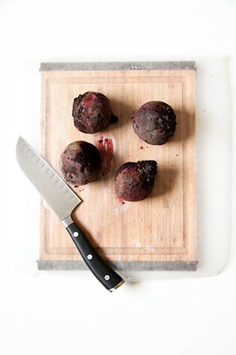 1. Use parchment or wax paper to cover your cutting board while peeling roasted beets. While my cutting board still got just a bit stained using wax paper, it’s a lot better than when using nothing at all.