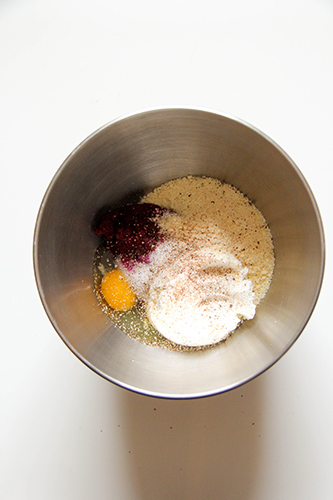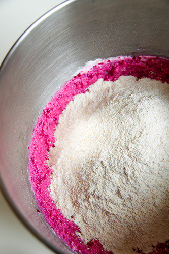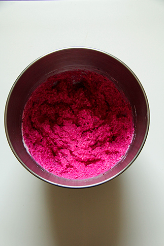 2. The four small beets I used (as you see in the photo) produced just under 1 1/2 cups of beet puree (what the recipe calls for). For a full 1 1/2 cups, I would have used 5 small beets. The amount of beet puree that you use, however, is slightly forgiving in my experience. I have used both slightly less and slightly more than 1 1/2 cups for this recipe and it has always been good.