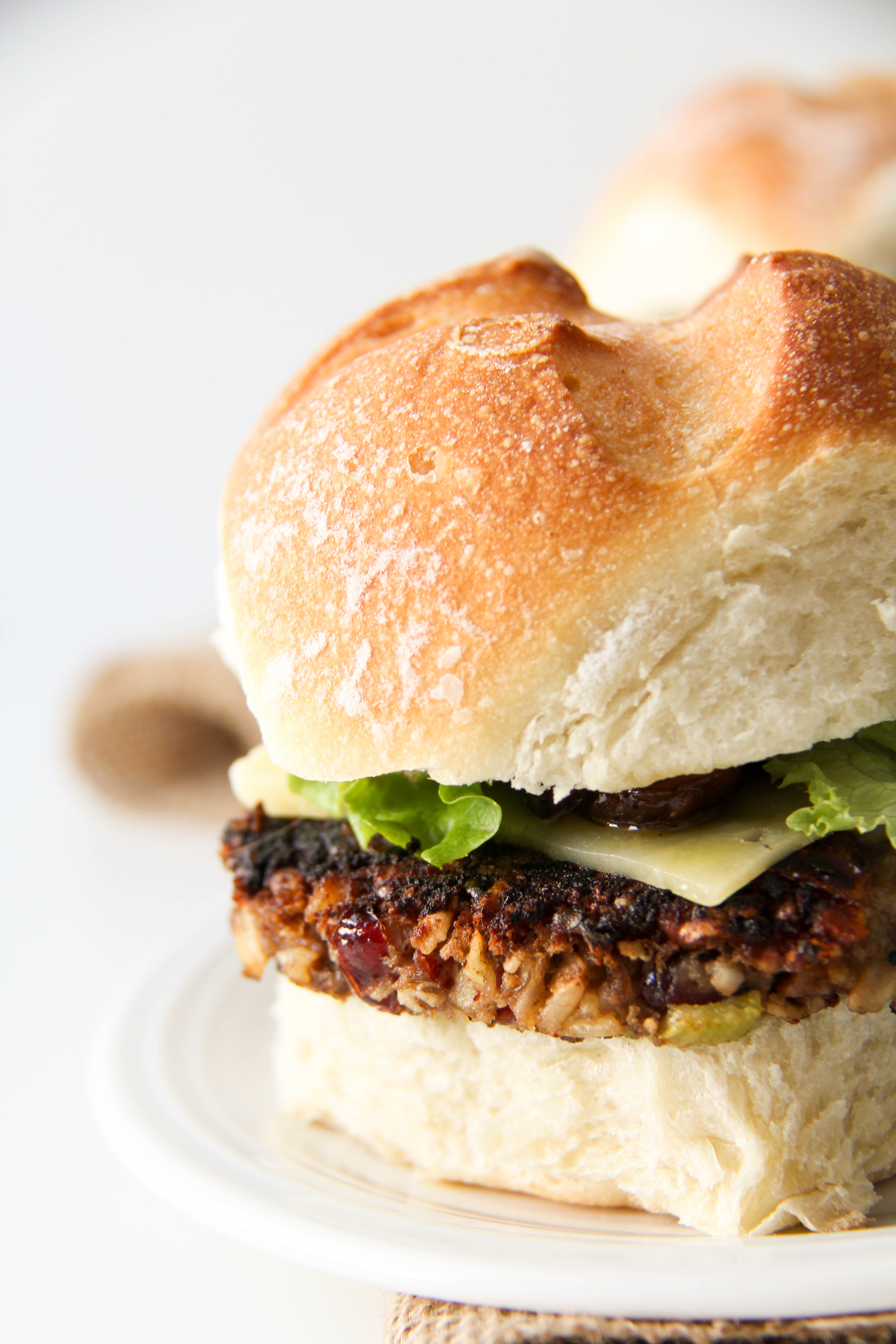 We recently had a conversation about veggie burgers that is very similar to the grill story. At one point, we were scared and intimidated to make them. And admittedly, that wasn’t too long ago. Looking back, the beginnings of our veggie burger making were rough, just like the beginnings of our grilling. There was much preparation and planning put into making a veggie burger, and unfortunately, a lot of failed attempts. I wouldn’t say that we are now experts or even close, but we’ve come a long way. This Thanksgiving burger (one of my all-time favorites) is definitely a testament to that. And now, today’s burger.